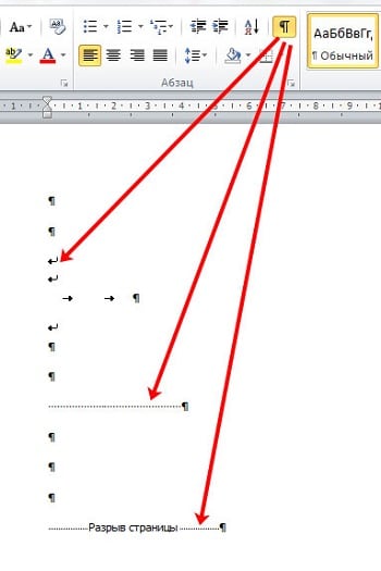 Для того, чтобы включить отображение подобных знаков в Ворде перейдите на вкладку «Главная», где нажмите на кнопку «¶». Вы увидите ряд различных (ранее скрытых) символов форматирования страницы.