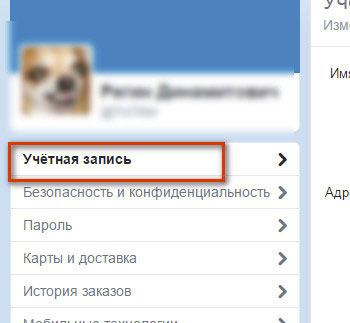 4. Убедитесь в том, что открыта вкладка «Учётная запись».