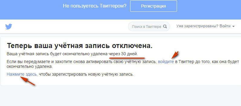Если вдруг вы заскучаете за своим микроблогом, а месяц со дня удаления учётной записи ещё не прошёл, профиль можно легко восстановить. Зайдите в Твиттер под своим логином. И тут же в браузере откроется страница, причём в таком же виде, как и прежде.