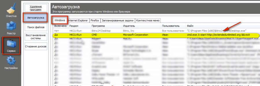 1. В интерфейсе CCleaner нажмите «Сервис».