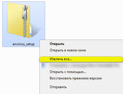 4. Распакуйте скачанный архив: клик правой кнопкой по файлу anvirrus_setup → «Извлечь всё… » (пункт контекстного меню).