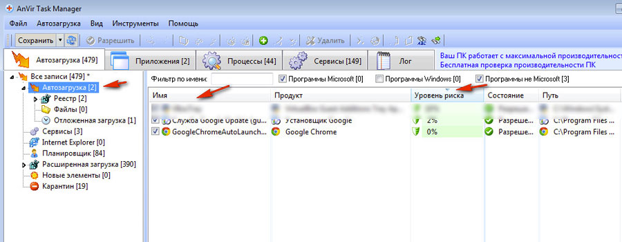 Совет! Проанализируйте уровень риска других объектов, находящихся в автозагрузке (см. соответствующую колонку в каталоге). Если параметр превышает 80-90% , их тоже рекомендуется отключить.