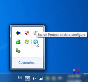 1. Кликните в трее иконку Search Protect (маленькая буква «e»).