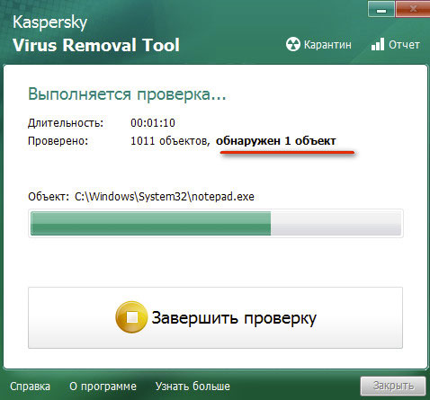 Внимание! Virus Removal Tool для корректной работы необходимо сетевое соединение. Обязательно разрешите запрос на коннект в фаерволе (в случае появления предупреждающего окна).