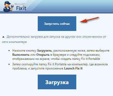 2. Под заголовком «Не удаётся установить… », в блоке «Fixit», нажмите кнопку «Запустить сейчас».