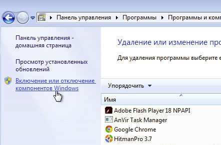 3. В вертикальном списке функций, расположенном слева, откройте настройку «Включение или отключение компонентов… ».