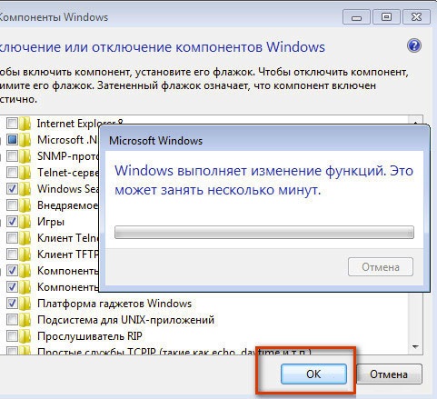 6. Дождитесь завершения изменения настроек. Нажмите «OK».