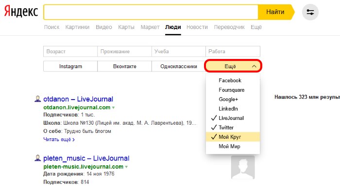 Когда вы введете все данные в форме для розыскивания на «Яндекс Люди», сервис начнет сканирование следующих ресурсов: ВКонтакте, LiveJournal, МойКруг, Одноклассники, Facebook, Твиттер. А также других менее популярных сервисов. Иногда в выдаче по фамилии и имени можно увидеть профили разных людей. Но по каким-то причинам они предоставляются системой как «родственные». Это означает, что на странице пользователя были найдены связывающие ссылки. Поэтому система приняла их за одного человека.