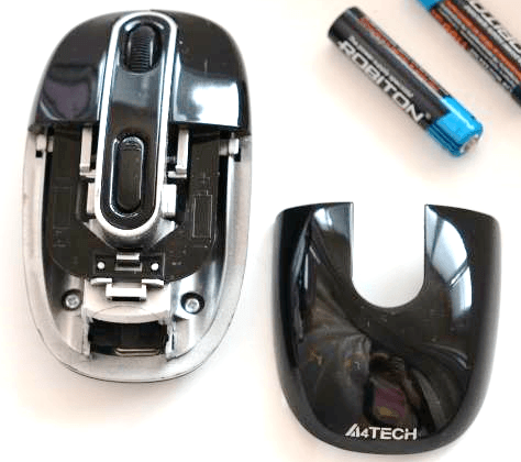 Если у вас не работает беспроводная мышка от ноутбука, то следующие, что нужно проверить, это батарейки. Откройте отсек с батарейками и установите новый комплект.