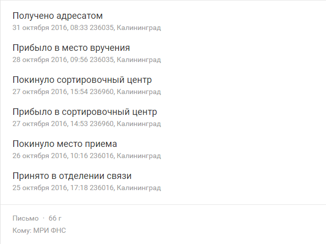 После этого отобразится ниже блок, где будут статусы письма в процессе всего его пути к вам. Обычно в самом низу находится информация об отправителе.
