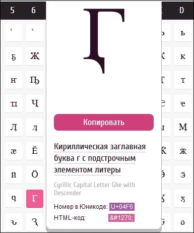 Работа с данным ресурсом займёт больше времени, нежели с вышеупомянутым lingojam.com. Здесь вам придётся посимвольно выбрать каждую русскую букву для составления нужных вам слов. После перехода на unicode-table.com вам необходимо кликнуть на нужную букву, после чего появится её увеличенное отображение с кнопкой «Копировать».