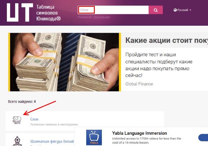 Следующий сервис является не совсем переводчиком Emoji. Это таблица эмотиконов, которая также может быть полезна. Все что вам нужно — это ввести любое слово в строке поиска. Ниже вы увидите все подходящие варианты смайлов в таблице ASCII. Помимо переводчика, сайт имеет огромную таблицу символов в этой кодировке. Открыть её можно, нажав на главный баннер сайта. По нажатию на каждый символ появляются кнопки копирования и дополнительная информация.