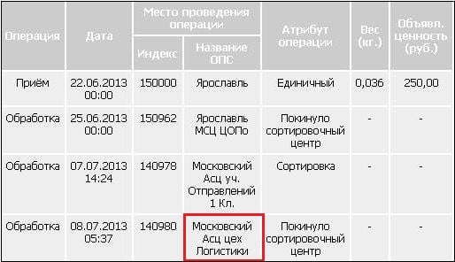 В Московском АСЦ имеется несколько больших цехов – сортировки бандеролей и посылок, логистики и другие, через которые проходит почтовая корреспонденции в её транзитном пути к получателю. В нашем же случае наличие упоминания о цехе логистики Московского АСЦ означает, что наша почта прошла обработку в логистическом цехе, после чего была отправлена на следующую транзитную ступень.