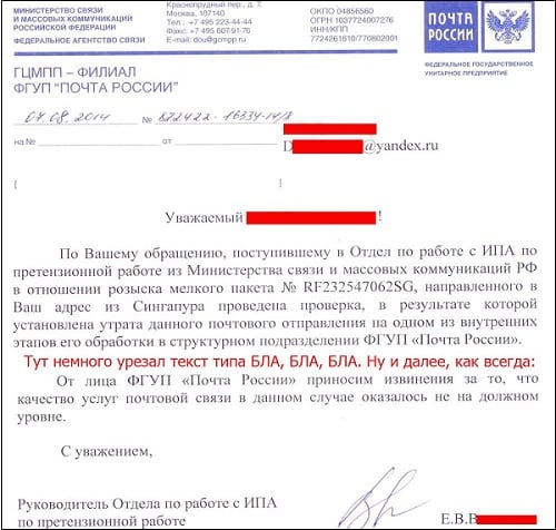 В некоторых случаях лишь официальная жалоба в Роскомнадзор помогала вернуть потерявшуюся в пути посылку.