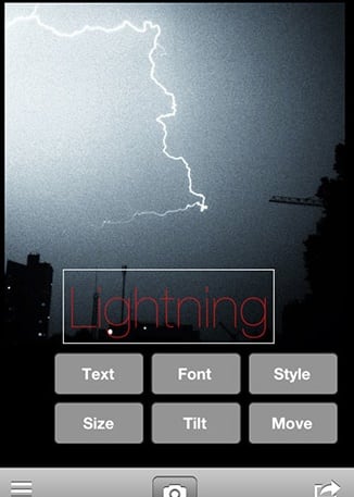 После этого нажмите на карандашик вверху, введите нужный текст, и кликните на «Done». Текст появится на экране. Удерживая его пальцем, установите его на нужное место изображения. С помощью кнопок «Font» выберите нужный размер шрифта, «Style» — стиля, «Size» — размера, «Tilt» — наклона и так далее.