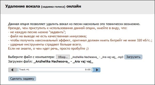 - Vocalremover.ru – популярный отечественный сервис поможет сделать минусовки