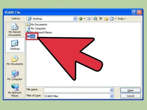 - Найдите на винчестере компьютера наш vcf-файл, кликните на нём дважды;