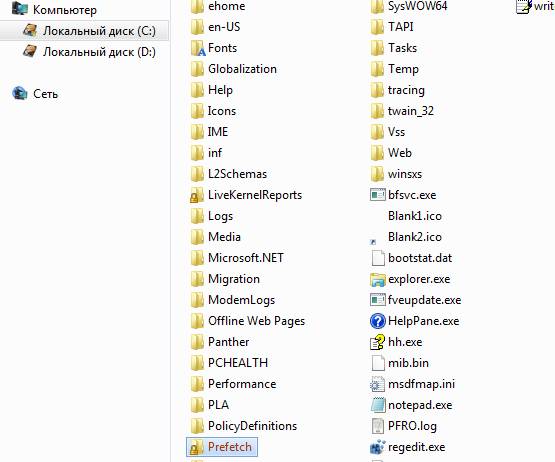 - переходим в папку «Windows» и «Prefetch»;