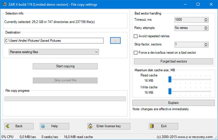 Наконец, укажите папку назначения на локальном диске и нажмите «Start copying», чтобы начать процесс восстановления.