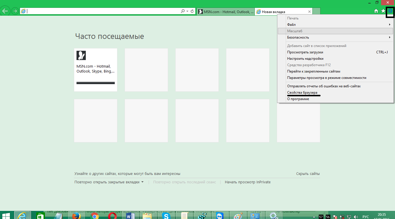 Нажмите кнопку «Сервис» в правом верхнем углу (изображена в виде шестеренки). Если у вас старая версия IE, меню «Сервис» можно открыть в панели инструментов сверху.