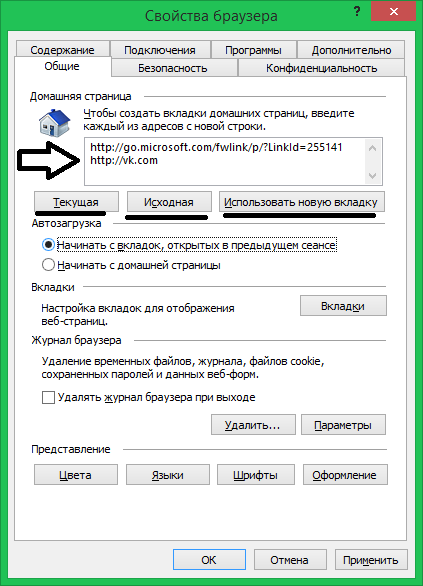- Использовать текущий адрес. Нажмите на кнопку «Текущая», чтобы использовать страницу, которая на данный момент открыта у вас в Internet Explorer.
