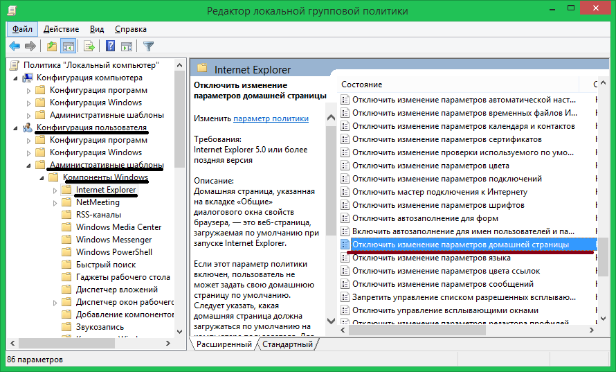 Часто бывает так, что домашний ПК или ноутбук могут использовать несколько человек. Например, друзья и члены семьи. Кто-то из них может случайно изменить стартовую страницу или же поставить свою, что для вас неудобно. Также некоторые программы тоже могут пытаться изменить домашнюю страницу обозревателя. В таких случаях полезной функцией будет блокировка смены начальной страницы IE.