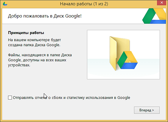После того как программа Google Drive установится вы увидите окно с предложением войти в аккаунт.