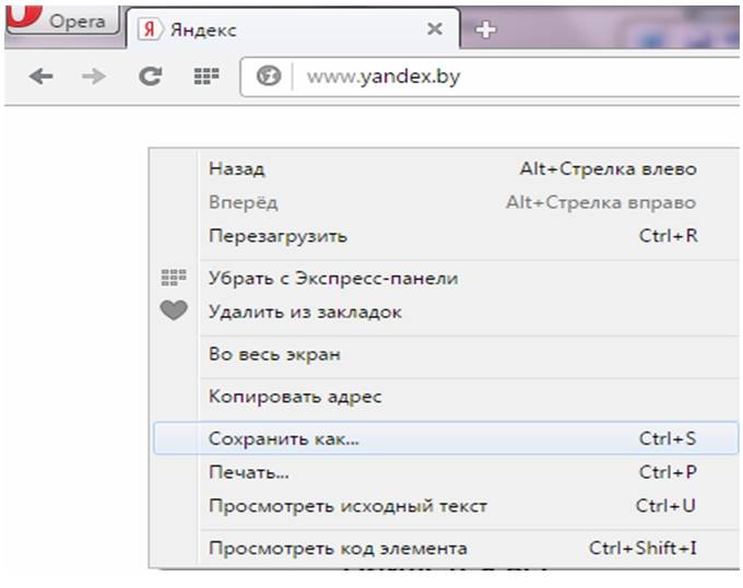 - выбрать в контекстном меню пункт «Сохранить как»;