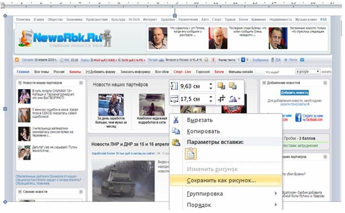 - щелкнуть по ней правой кнопкой мыши и выбрать в меню «Сохранить как рисунок»;