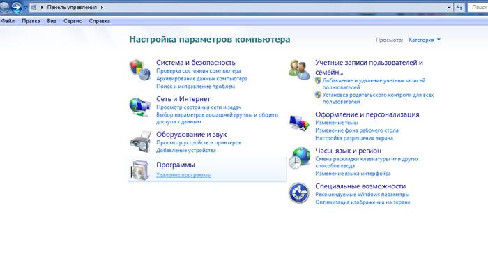 - в разделе «Программы» выбрать «Удаление программ»;