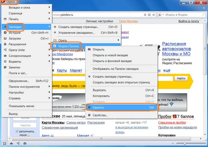 Чтобы удалить Яндекс Бар из Opera через меню установки и удаления программ необходимо: