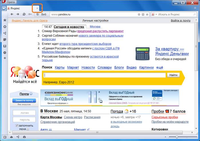 - удаляем вкладку, нажав на крестик рядом с ней;