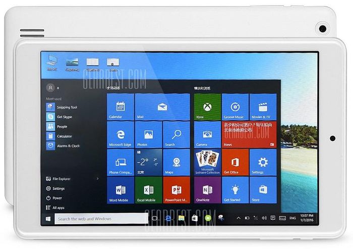 Еще одно детище китайского производителя Onda, которое доступно как в комплекте с Android + Windows 10, так и без – просто с Windows 10. Но наличие или отсутствие Android никак не влияет на цену. Идентификатор «CH» в названии планшета указывает, что в отличие от младшего брата Onda V820w, модель V820w CH оснащается процессором Intel Cherry Trail Z8300. В остальном устройство практически полностью повторяет особенности младшей модели: 2 гигабайта оперативной, 32 Гб встроенной памяти и 8-дюймвый IPS-дисплей с разрешением 1280 x 800 пикселей. В общем, еще один хороший и, что не менее важно, демократичный планшет.