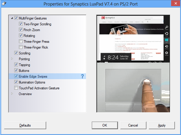 Также откройте «Панель управления» и перейдите в раздел «Мышь». В диалоговом окне свойств мыши перейдите на вкладку «Сенсорная панель». Название вкладки может отличаться в зависимости от марки устройства (Alps Electric Corporation, Cirque Corporation, Synaptics, ElanTech) и конкретной модели ноутбука. В окне с настройками (Settings) убедитесь, что у вас поставлены все отметки, т.е. функции тачпада активны.