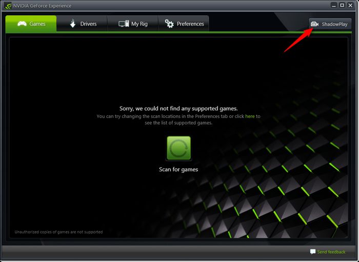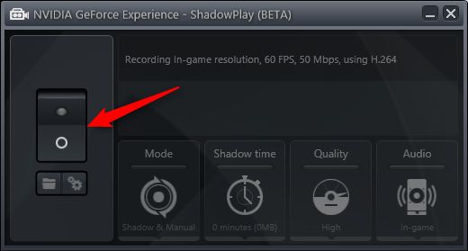 Запустите GeForce Experience и нажмите на кнопку «ShadowPlay» в правом верхнем углу.