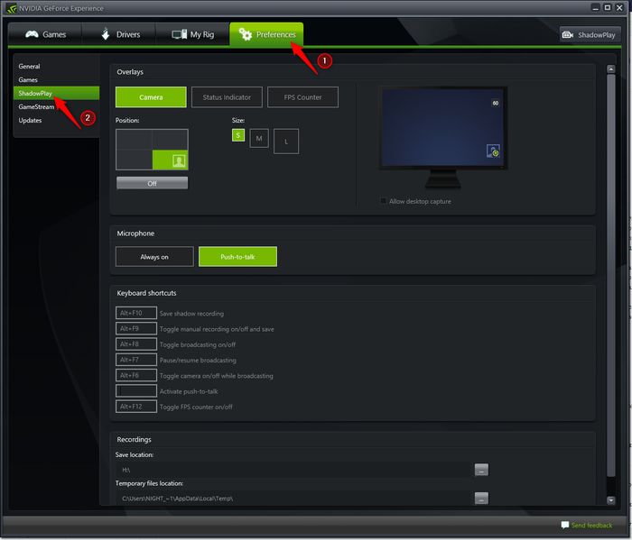 После активации ShadowPlay вы сможете изменить настройки. Вернитесь в окно GeForce Experience, выберите вкладку «Preferences», а затем перейдите в раздел «ShadowPlay».