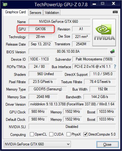 — NVIDIA: кодовое название должно начинаться с GK или GM.