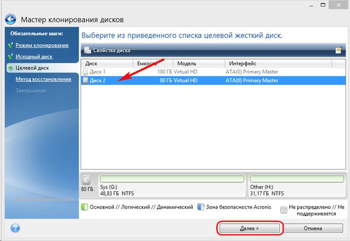 2. Исходный и целевой жесткий диск