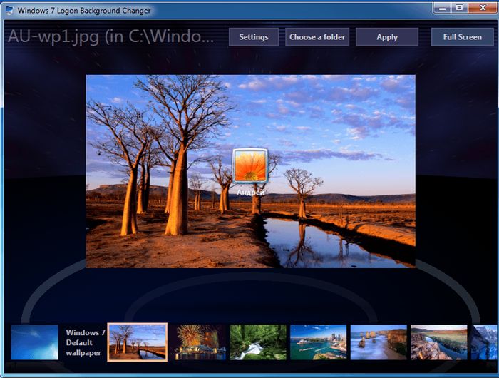 Пожалуй, это один из самых популярных инструментов этого типа. Windows 7 Logon Background Changer обладает красивым интерфейсом, и совместим со всеми редакциями Windows 7, от Starter до Ultimate. Кроме того, имеется поддержка обеих архитектур – x86 и x64.