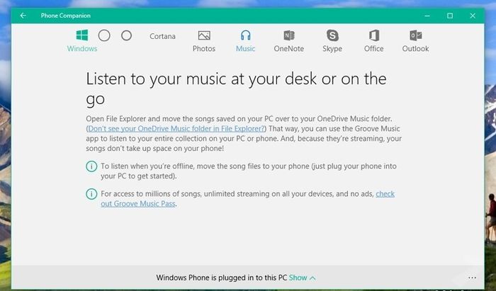 В Phone Companion в разделе Music содержатся две отсылки на бренд Groove Music, которые не остались незамеченными. При этом одна из них отправляет пользователей на страницу Xbox Music Pass.