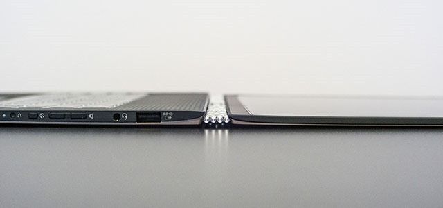 Наряду с превосходным визуальным эффектом новый шарнир позволил Lenovo уменьшить весь ноутбука на 14% и на 17% толщину – по сравнению с прошлогодней моделью. В результате толщина Yoga 3 Pro составляет всего 12.8 мм.