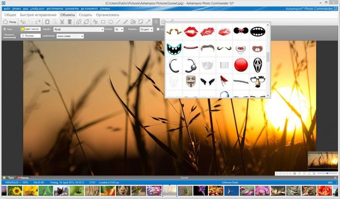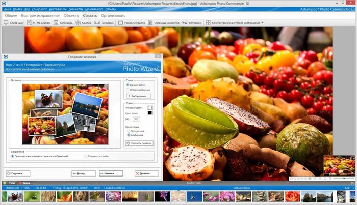Ashampoo Photo Commander – это не просто набор для быстрой оптимизации изображений или для организации больших коллекций фото; вы можете использовать этот инструмент для просмотра фотографий (либо в полноэкранном режиме, либо в режиме слайд-шоу), добавлять фигуры и текст, создавать коллажи, календари, HTML-альбомы, или сшивать изображения в панорамы.