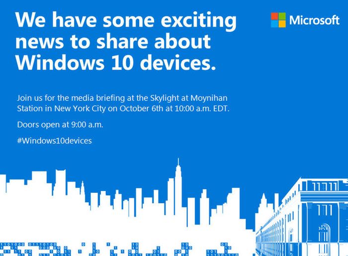 Лотерея «Угадай дату презентации новых устройств Microsoft» наконец-то закончилась официальным анонсом. 6 октября в Нью-Йорке компания проведет пресс-конференцию, в рамках которой будут показаны первые устройства Microsoft с Windows 10.