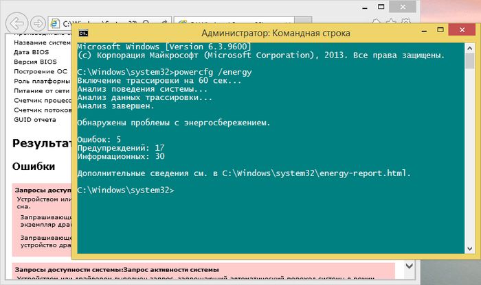 В течение 60 секунд PowerCfg выполнит полное сканирование системы и предложит удобный отчет о текущем состоянии энергопотребления, как и подробный перечень рекомендаций для оптимизации его эффективности.