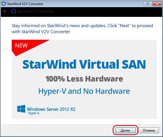 Запускаем StarWind V2V Converter и сразу жмем «Далее».
