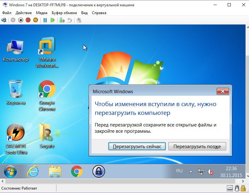После запуска в гостевой Windows 7 автоматически будут установлены еще кое-какие драйвера для работы виртуального оборудования. И после перезагрузки можно будет приступать к полноценной работе с виртуальной машиной.