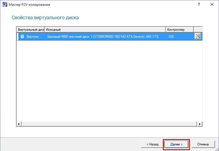 Ничего не меняем в свойствах диска виртуальной машины. Жмем «Далее».