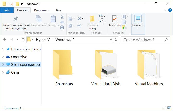По пути сохранения увидим стандартные папки с составляющими виртуальных машин Hyper-V.