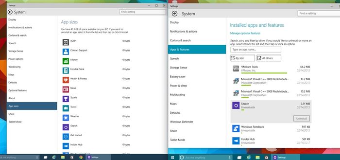 Изменение, которое лично я считаю наиболее интересным, заключается в том, что новый менеджер приложений, доступный из меню «Параметры» (Settings) теперь объединяет в себе как управление современными приложениями (которые устанавливаются из Windows Store), так и классическими программами.