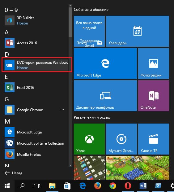 DVD-проигрыватель Windows появится в списке недавно добавленных приложений, а если этот список у вас отключен в настройках, тогда ищите проигрыватель в разделе «Все приложения».